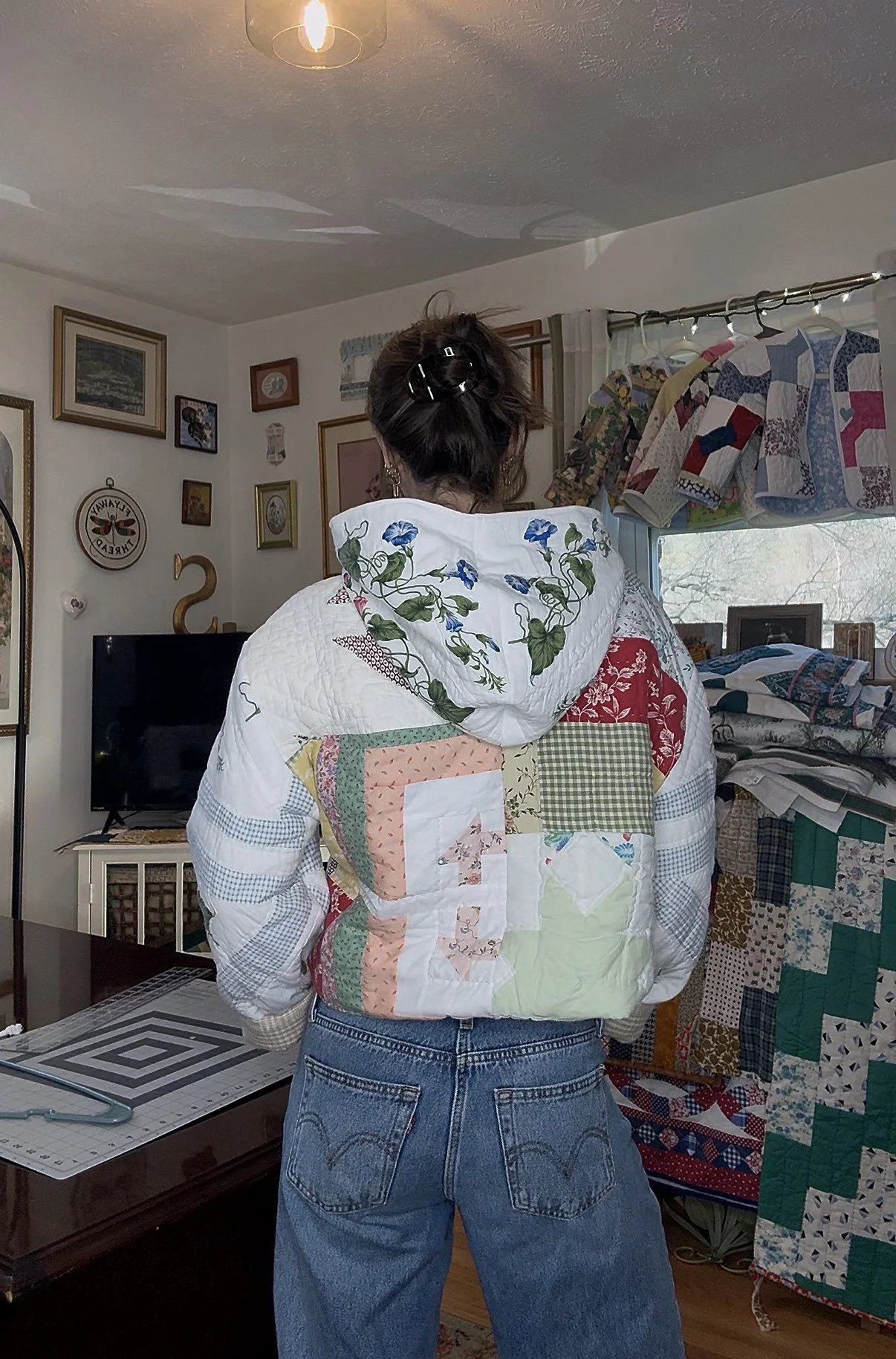 Created by utilizing over 7 different vintage quilts.