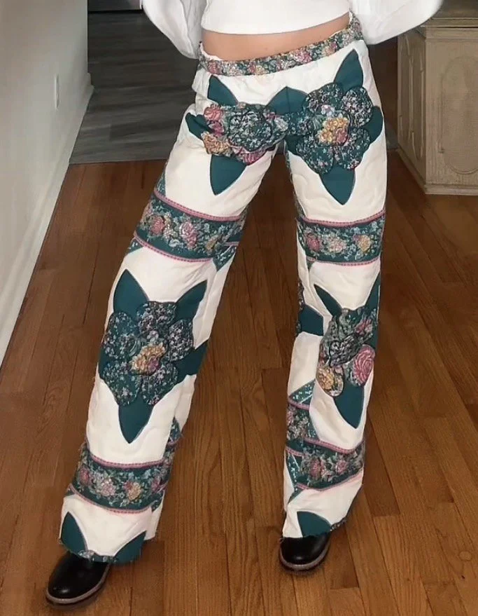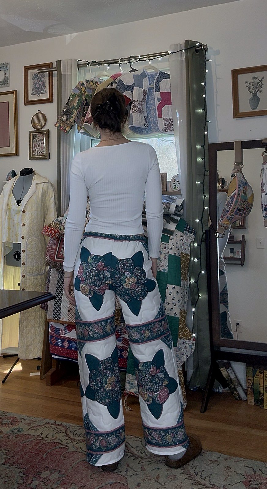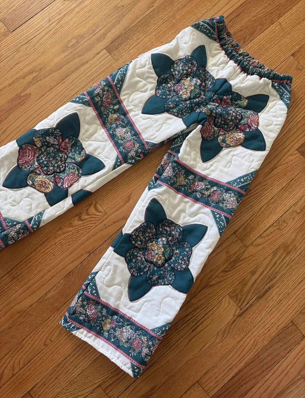 Shop › The Abigail Pants - Quilted Pants Image 1 of 4 Image 2 of 4 Image 3 of 4 Image 4 of 4 The Abigail Pants - Quilted Pants $68.00 it’s like sweatpants but BETTER ;)size s/xselastic waist 24” -27”inseam 28” created from a manufactured quilt Add To Cart Added! it’s like sweatpants but BETTER ;)size s/xselastic waist 24” -27”inseam 28” created from a manufactured quilt Reviews Reviewer Name Review Date Star Rating Description Posted on Etsy Product Show More