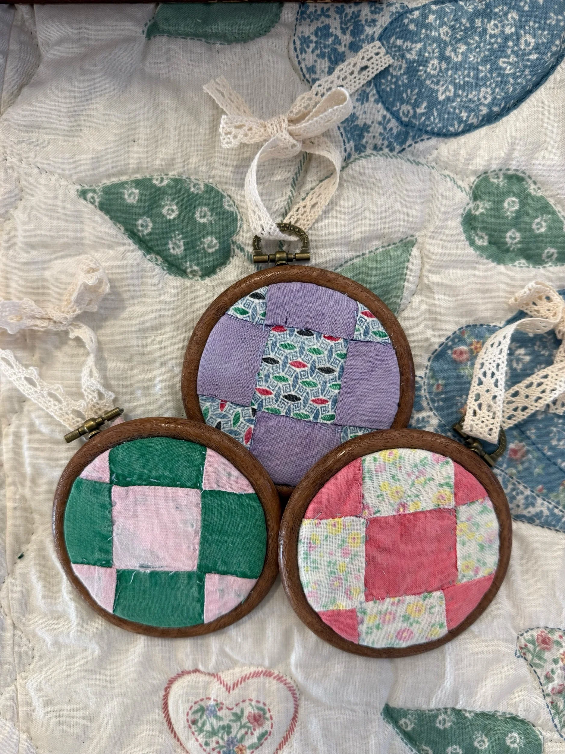 Shop › Vintage Quilted Ornament (set of 3) Image 1 of 1 Vintage Quilted Ornament (set of 3) $18.00 Created from vintage handstitched quilts. Add To Cart Added! Created from vintage handstitched quilts. Reviews Reviewer Name Review Date Star Rating Description Posted on Etsy Product Show More